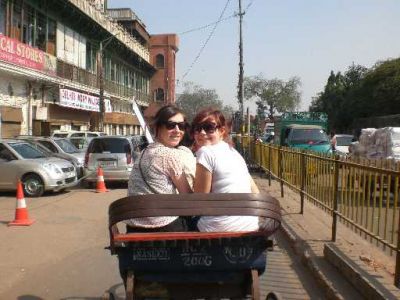 Afterwards we visited the Jama Masjid, the second largest Mosque in the sub-continent, with the capacity to hold up to twenty thousand people at one time. It was a brief yet enjoyable visit as they were about to start their afternoon prayer. On leaving the Mosque we were greeted by seven smiling rickshaw drivers who were ready to take us on a manic trip round the market streets of Old Delhi. We saw everything from wedding dress stalls to vegetable carts on roads no wider than England’s pavements!!! We were terrified climbing aboard, but this was soon overtaken by excitement!