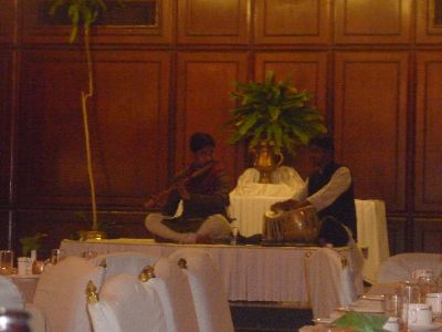 After collecting our cases, which were all still intact, we went to our new residence, Hotel Clarks. The hotel is of fine quality and we enjoyed a lovely meal in the restaurant listening to the musicians playing a tabla and an Indian flute, while the soft drone of a sitar was played in the background. Millie then knocked over her rather large bottle of Royal Challenge saturating the table cloth as an entourage of Japanese travellers looked on with bemused expressions and disgruntled murmurs! :)